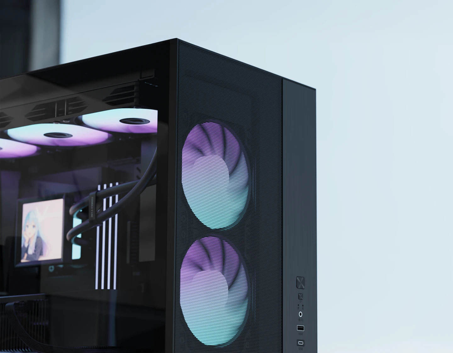 Equipped with a USB 3.0 port and a Gen 2 Type-C connector, the front I/O delivers fast and convenient connectivity for daily use.
