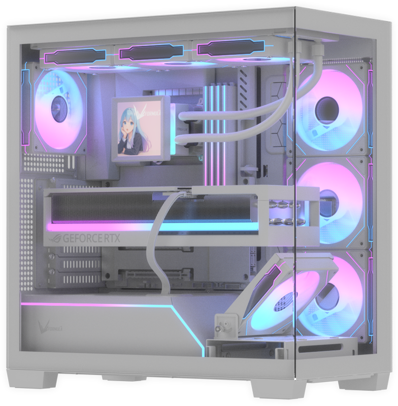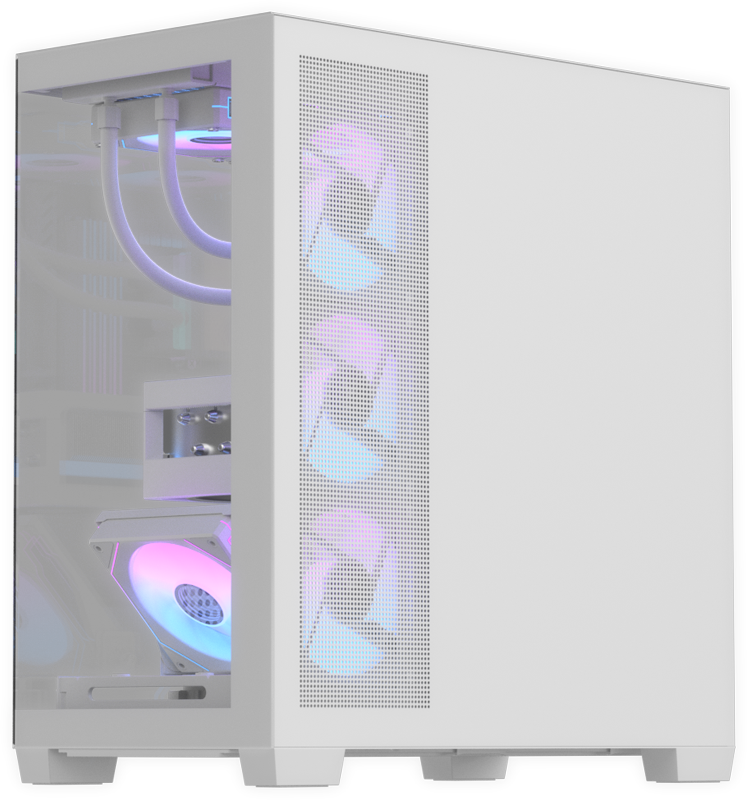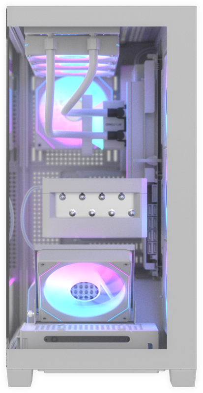 The Crystal Z8G Floe version comes pre-installed with 5 ARGB fans, delivering vibrant lighting and smooth airflow right out of the box—no extra setup needed for a stunning and efficient build.