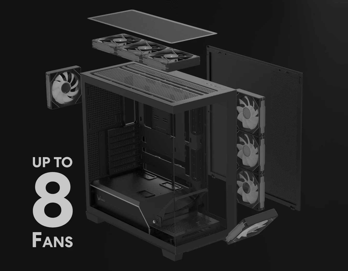 Supports up to 8 x 120mm or 3 x 140mm fans, offering flexible cooling layouts for any build—whether you prioritize silent operation or maximum airflow.