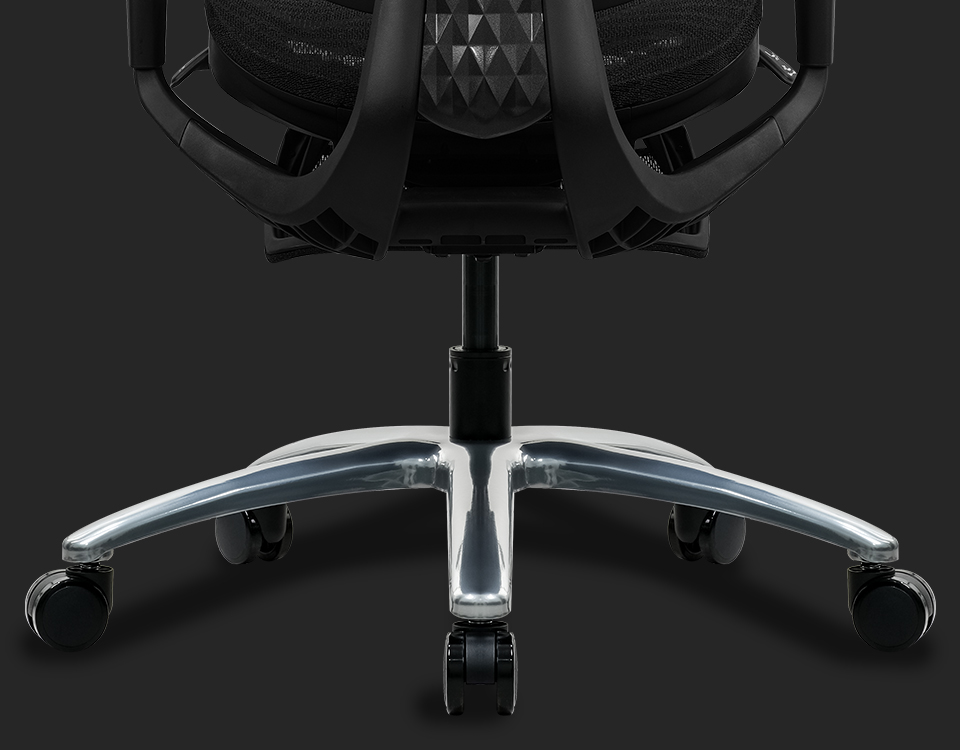 Durable 350mm steel base paired with BIFMA-certified gas lift. Ensures stability and smooth height control.