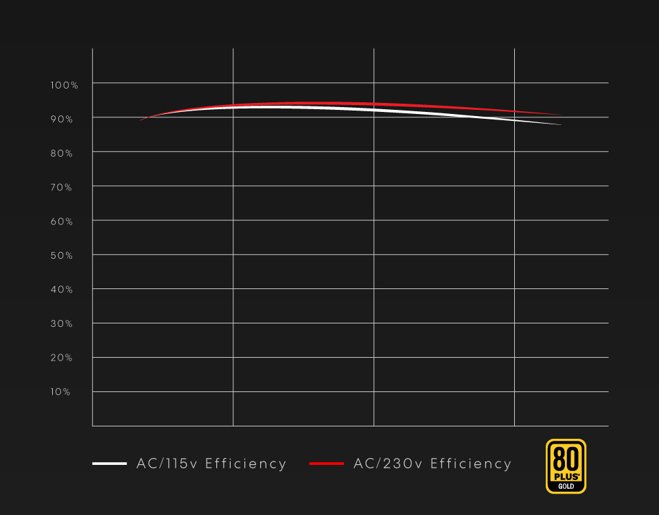 Keeps ripple under 40mV for 5V/3.3V/5VSB and 80mV for 12V, ensuring clean power delivery and hardware longevity.