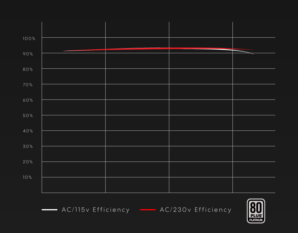 Achieves high efficiency at both 115V and 230V, reducing wasted heat, lowering electricity consumption,