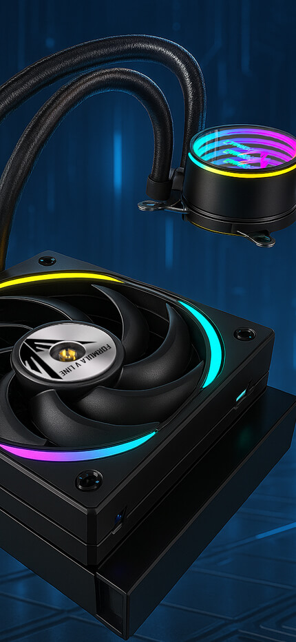 A high-performance liquid cooler with an Infinity Mirror RGB design that provides a captivating and distinctive lighting effect.