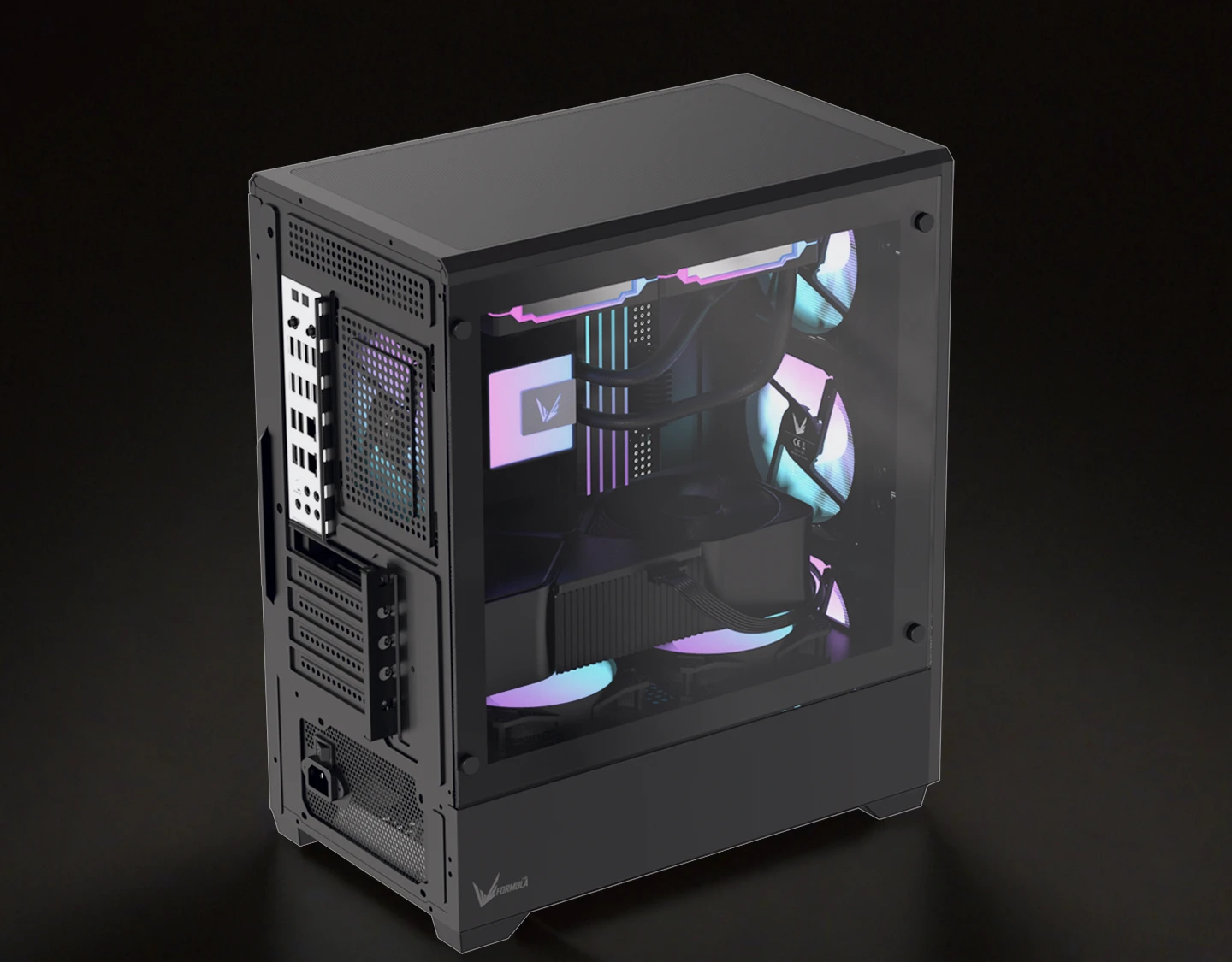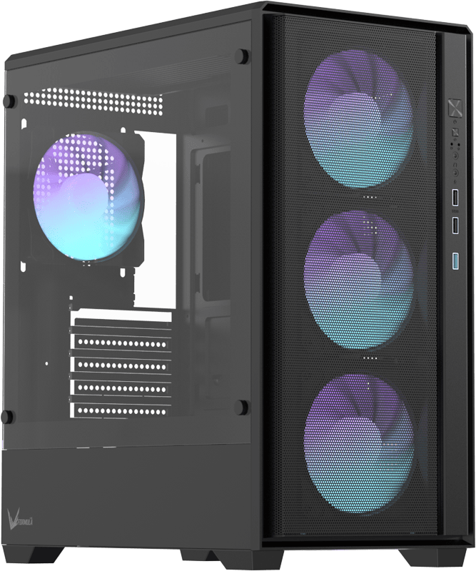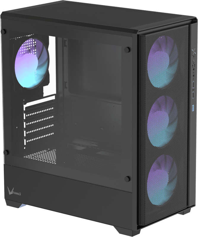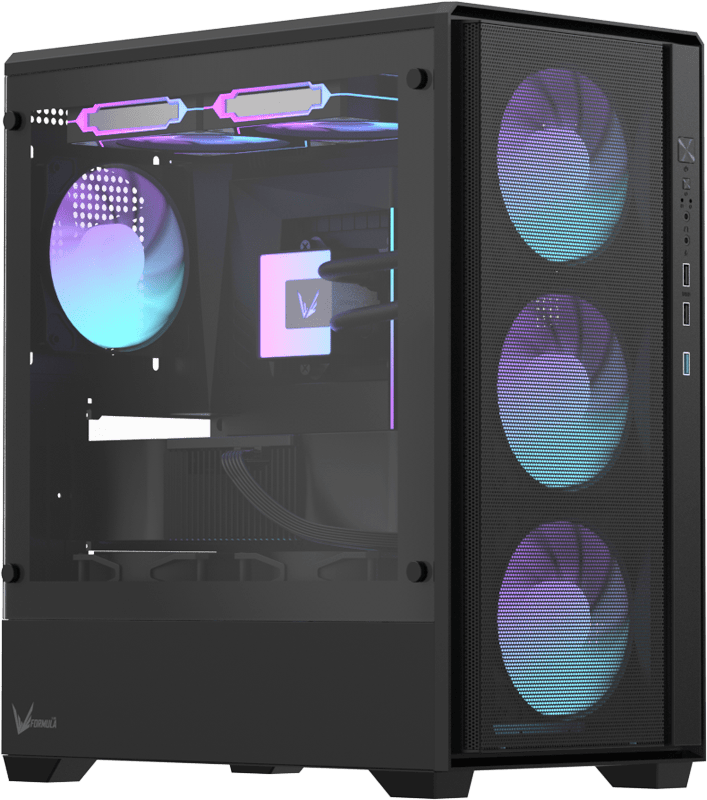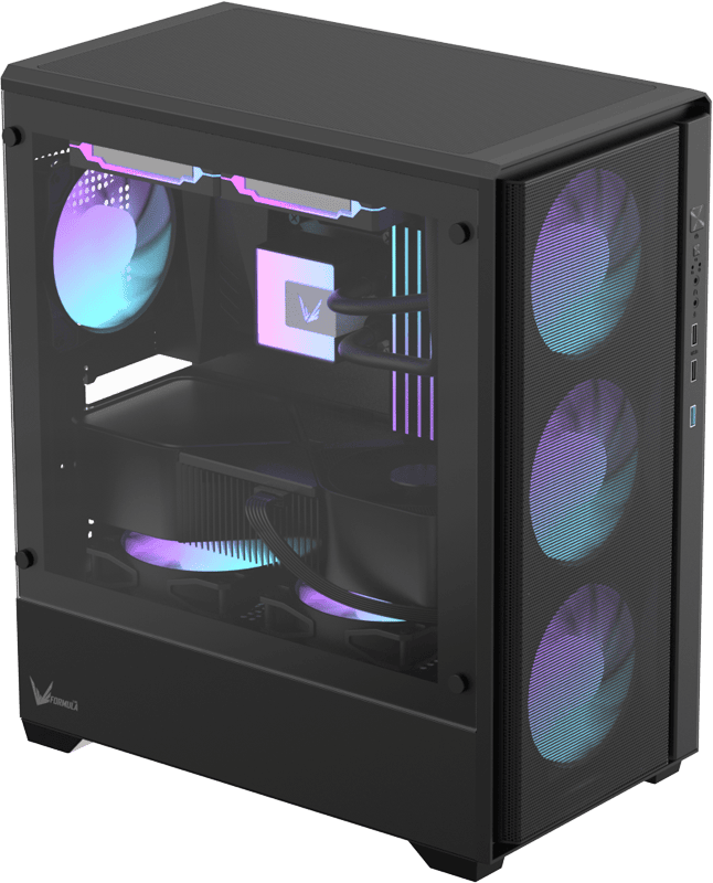Корпус разработан для поддержания сбалансированного воздушного потока, улучшая охлаждение видеокарты и повышая стабильность системы под нагрузкой.
