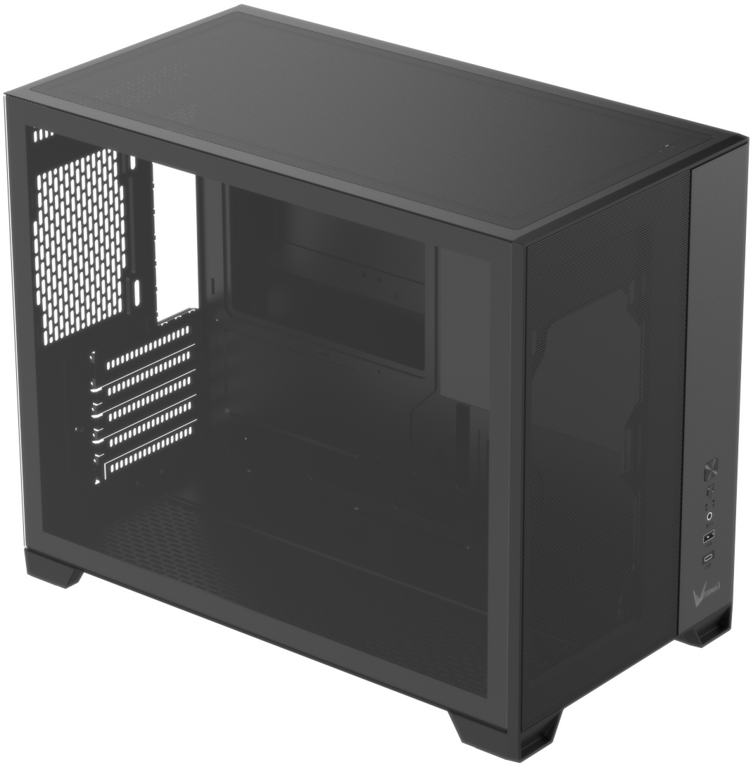 Широкая сетчатая панель обеспечивает максимальный приток воздуха, а декоративная пластина под металл придаёт корпусу аккуратный и строгий вид.