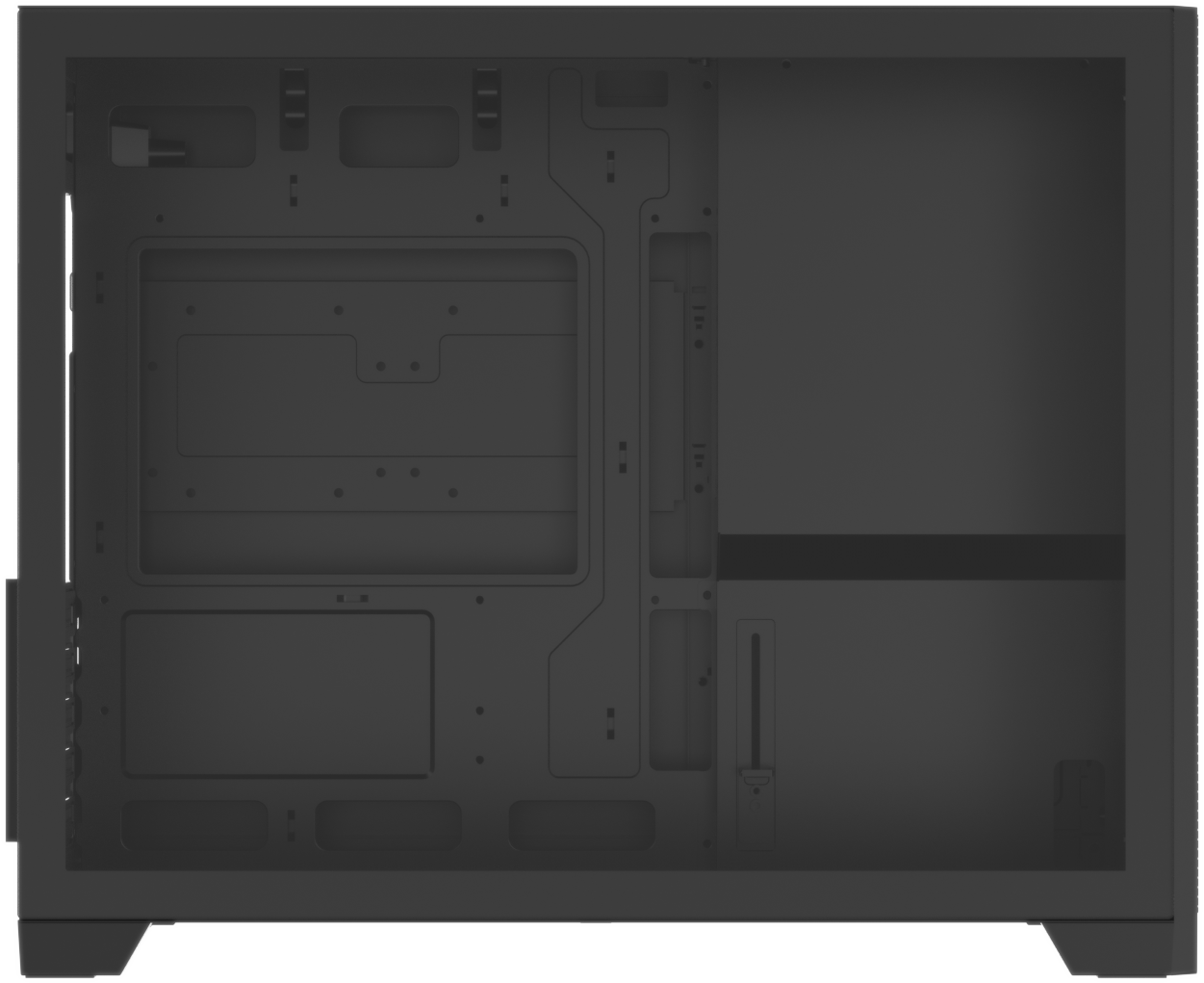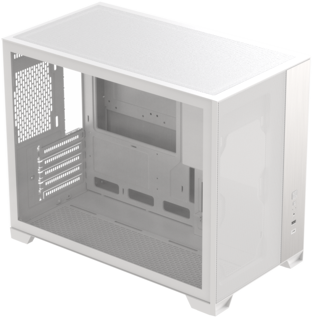 Фронтальное расположение блока питания уменьшает ширину корпуса и не препятствует воздушному потоку, обеспечивая хорошую эффективность охлаждения без увеличения внешних размеров.