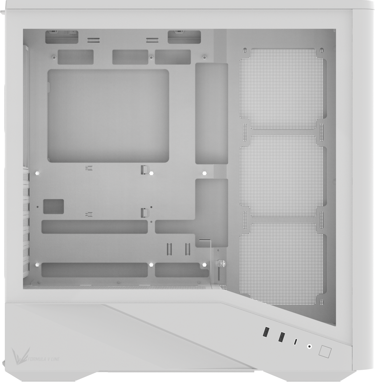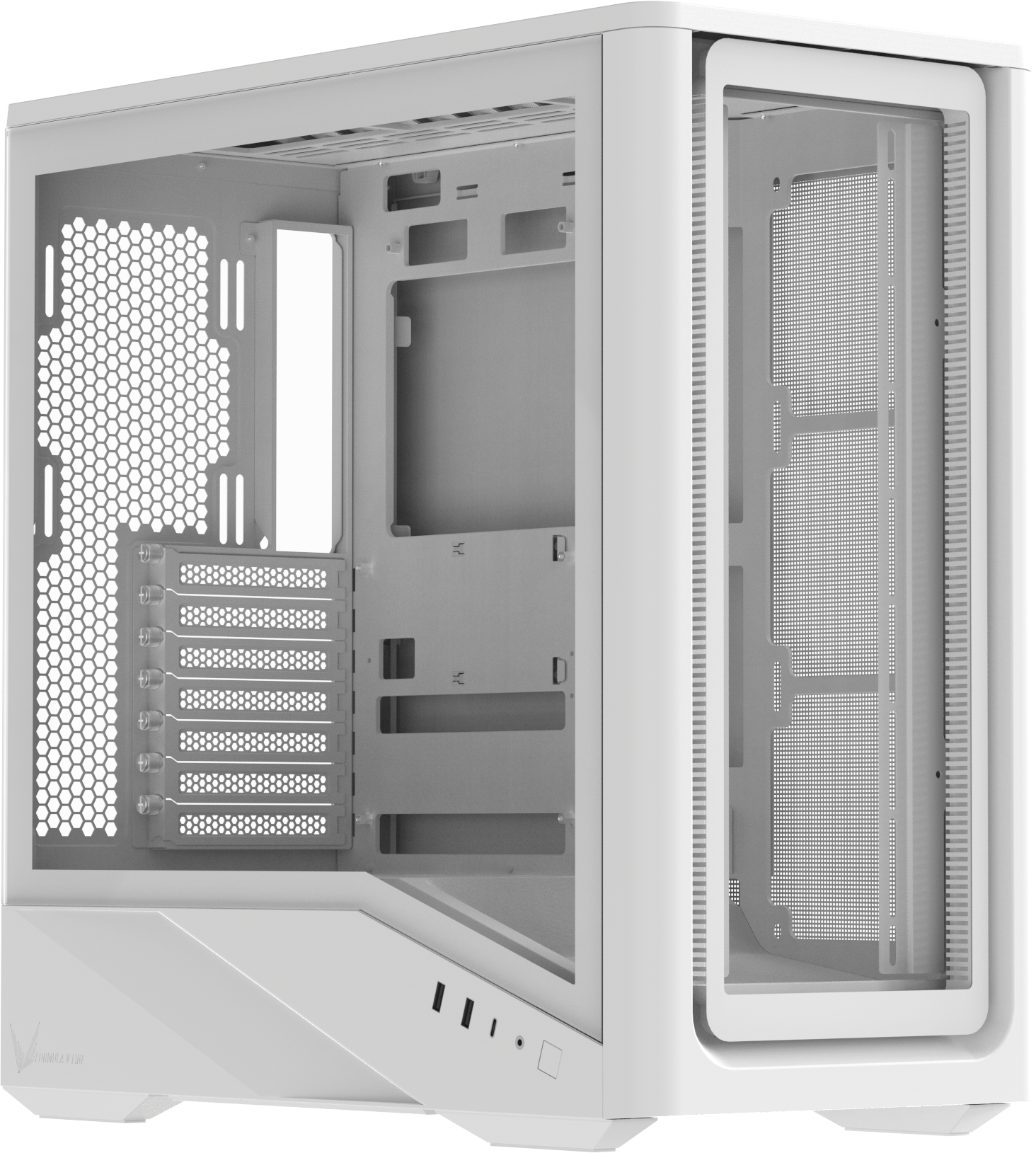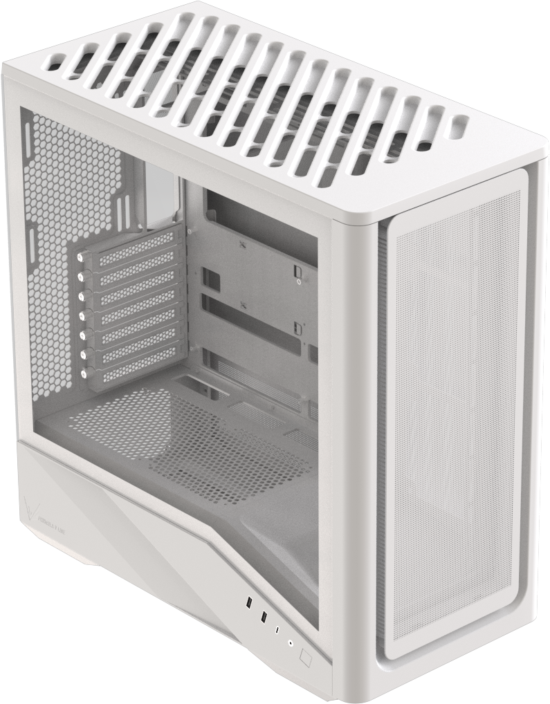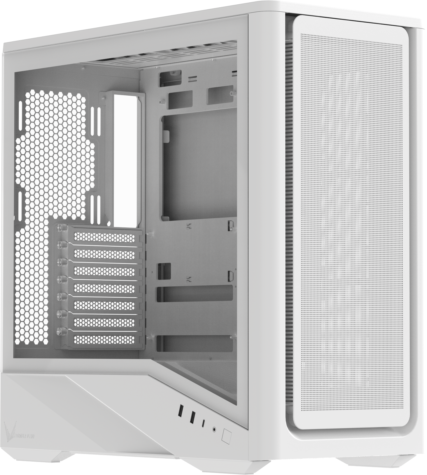 Боковая панель оснащена большой вентиляционной зоной, обеспечивающей дополнительный приток или вытяжку воздуха для боковых вентиляторов и позволяющей нижним вентиляторам забирать больше прохладного воздуха. Такое решение улучшает воздушный поток и общую эффективность охлаждения.