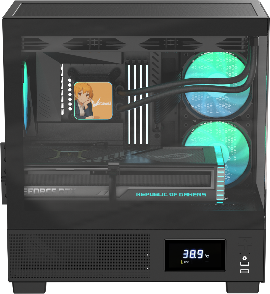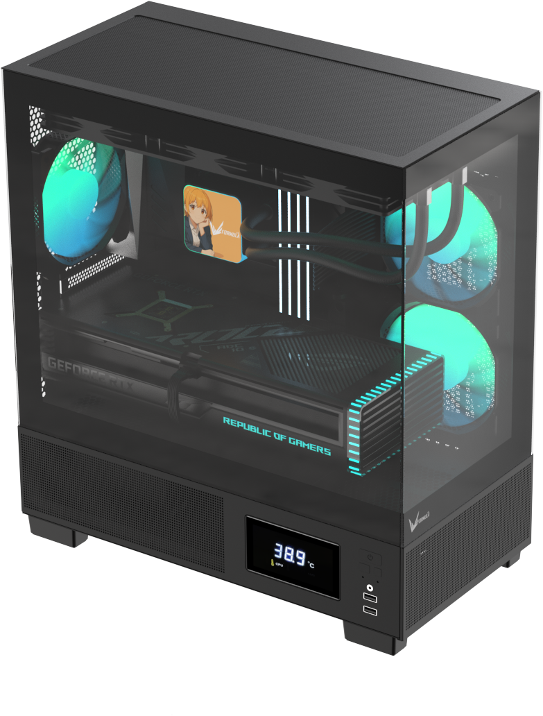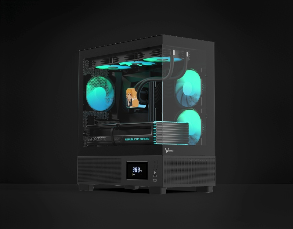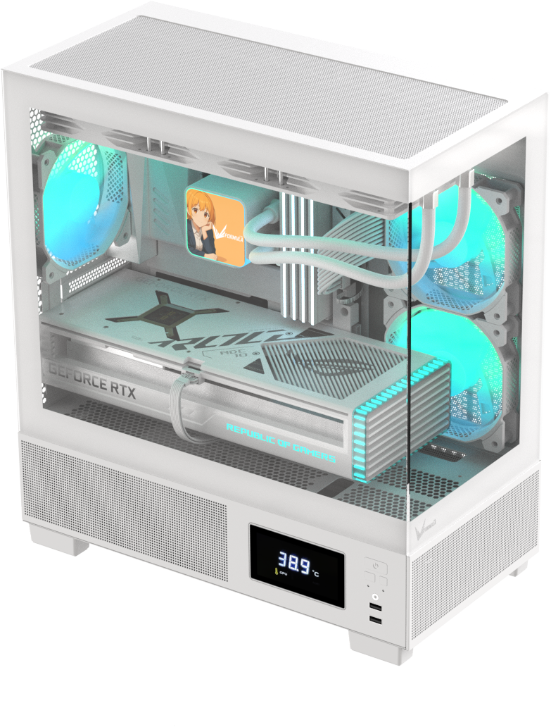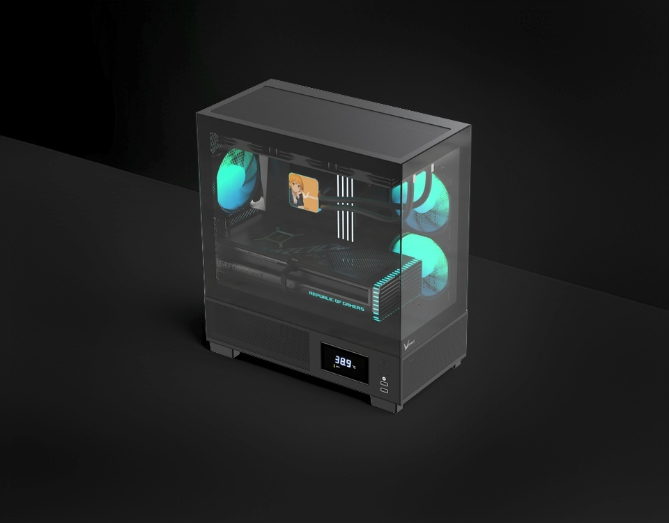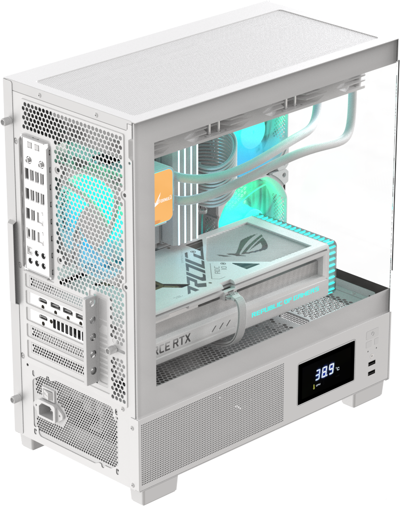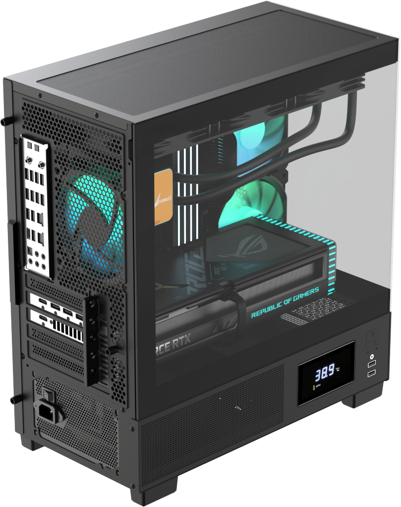 Демонстрируйте сборку почти под любым углом с помощью элегантных закалённых стеклянных панелей на 270°, идеально подходящих для RGB-подсветки и аккуратного кабель-менеджмента.