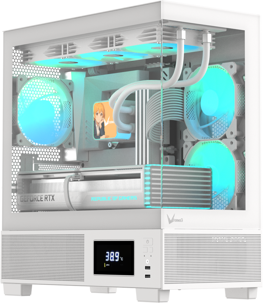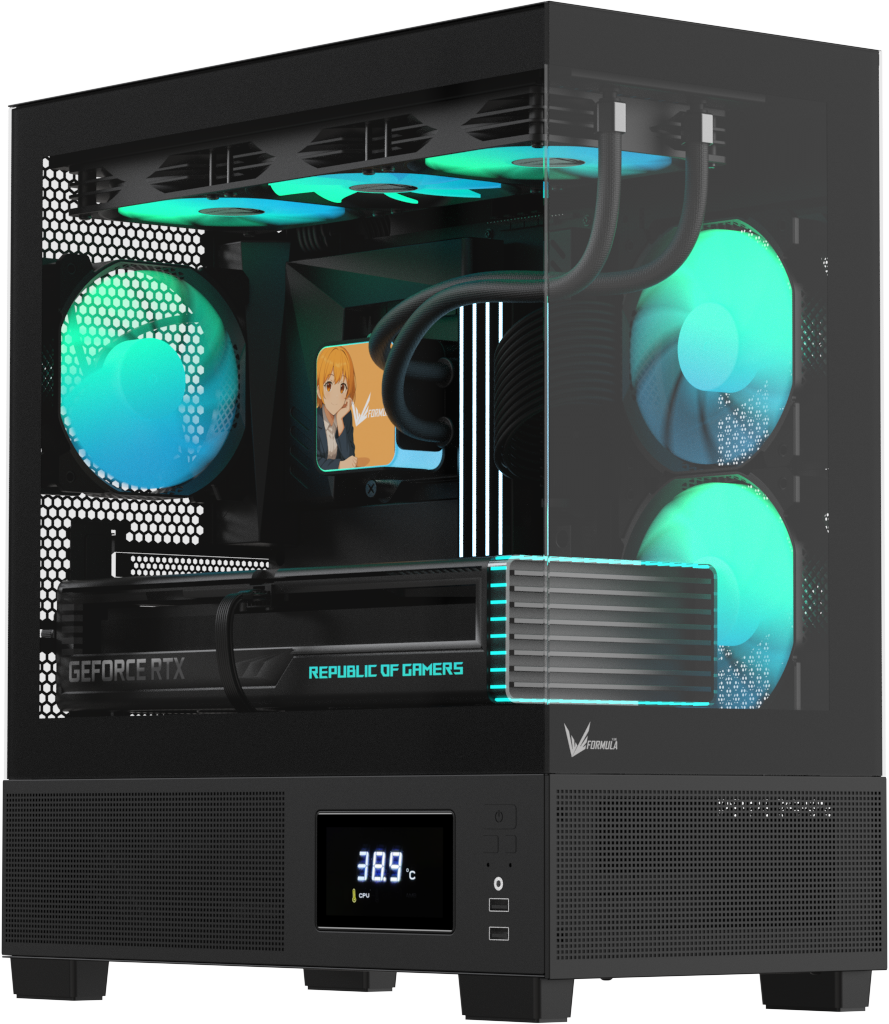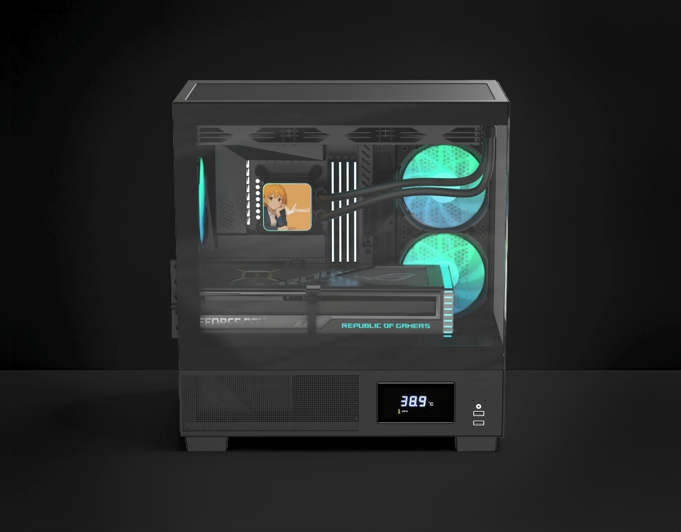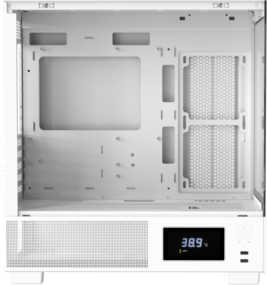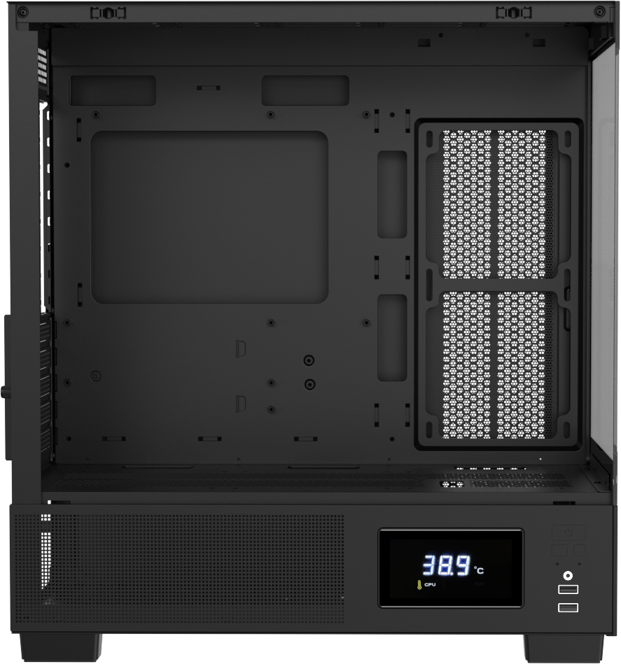 Все модели оснащены встроенной панелью Switch Display, которая подключается к материнской плате через USB и отображает температуру корпуса, CPU и GPU в реальном времени — без дополнительного ПО и внешних контроллеров.