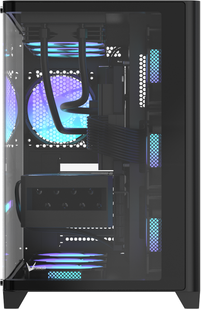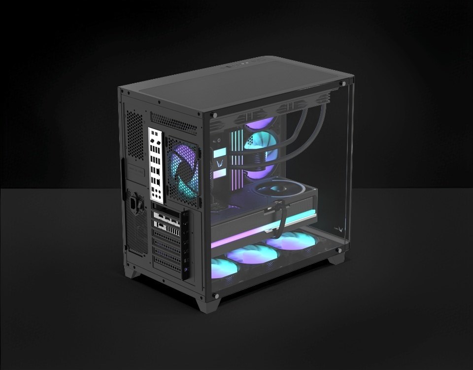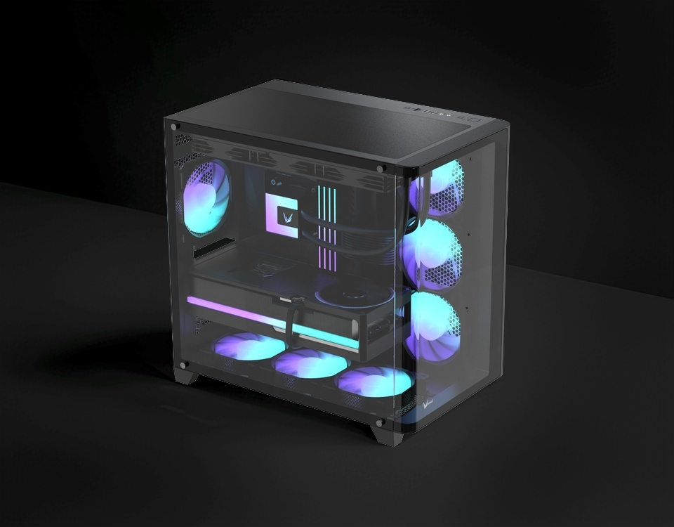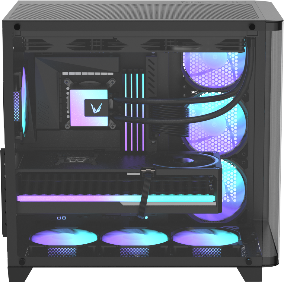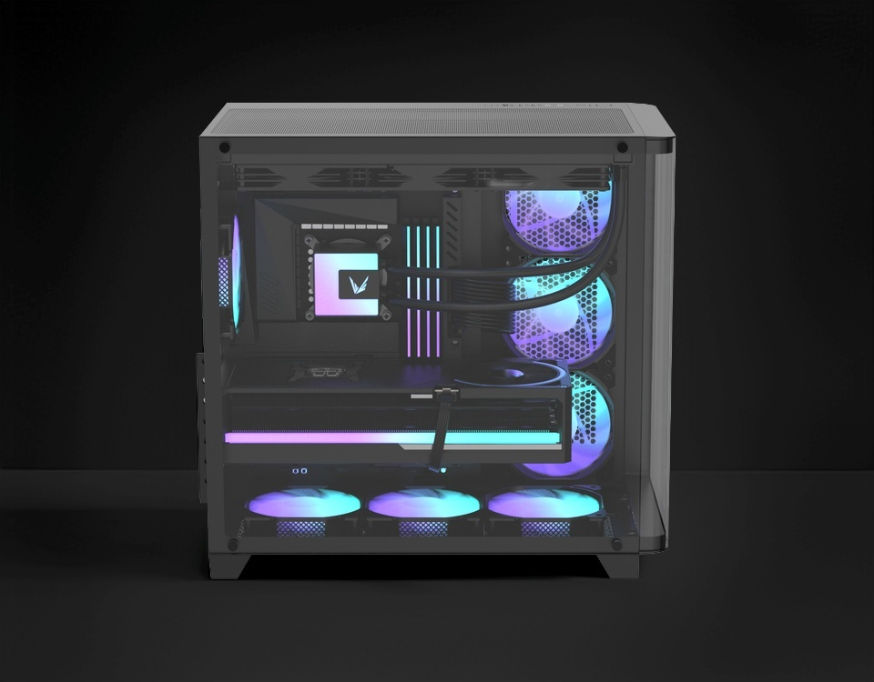 Изогнутая передняя панель из закалённого стекла и полноразмерная боковая панель создают стильный вид и позволяют эффектно демонстрировать сборку.