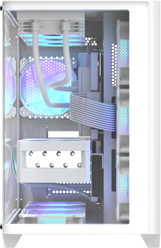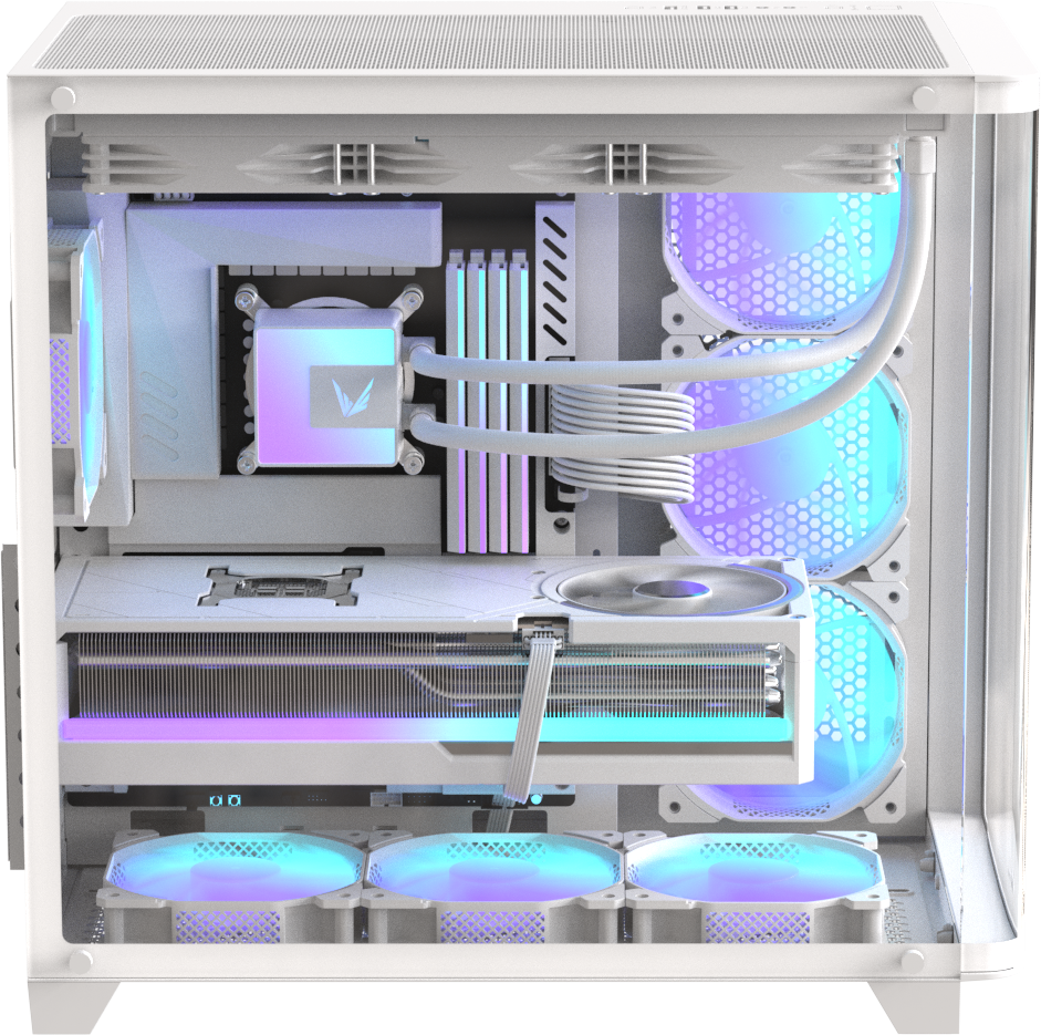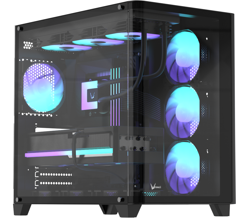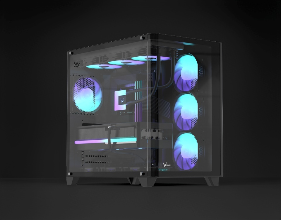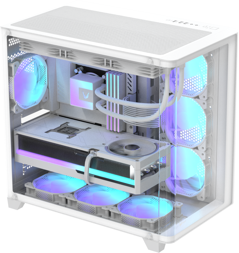 Изогнутая передняя панель из закалённого стекла и полноразмерная боковая панель создают стильный вид и позволяют эффектно демонстрировать сборку.
