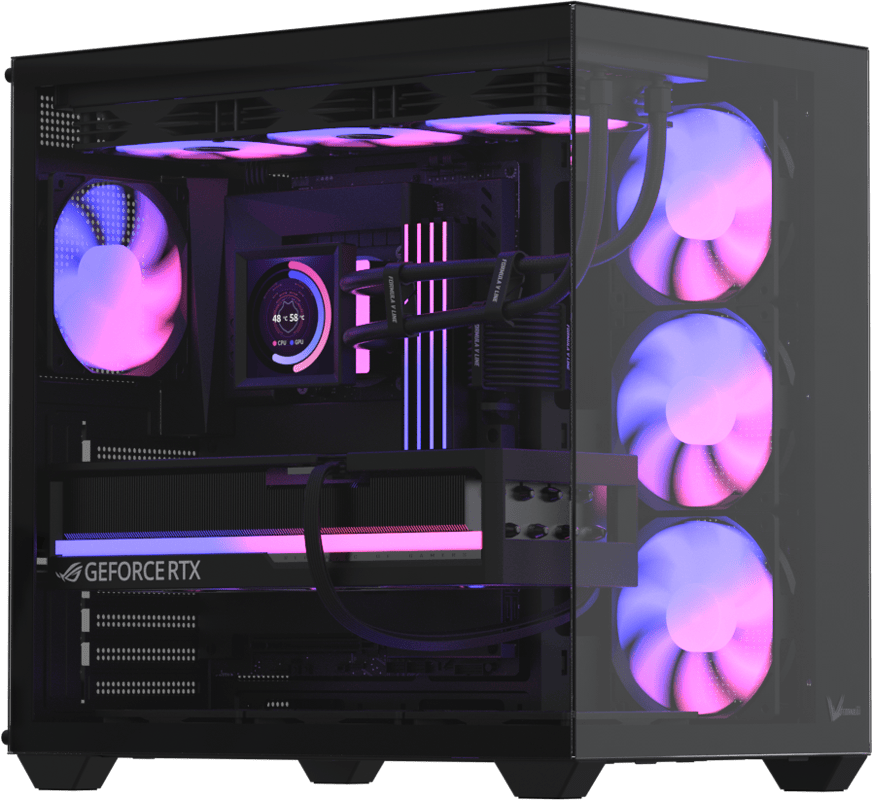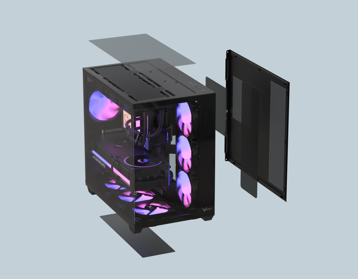 Поддержка до десяти вентиляторов 120 мм и установка 140 мм вентиляторов сверху обеспечивают равномерный и мощный воздушный поток для высокопроизводительных систем.