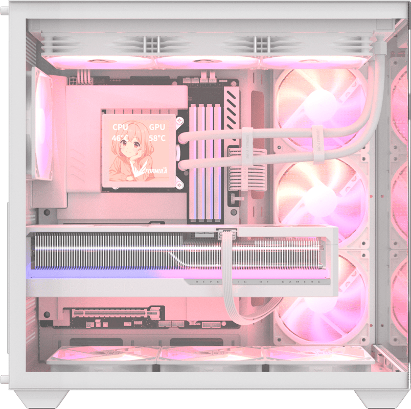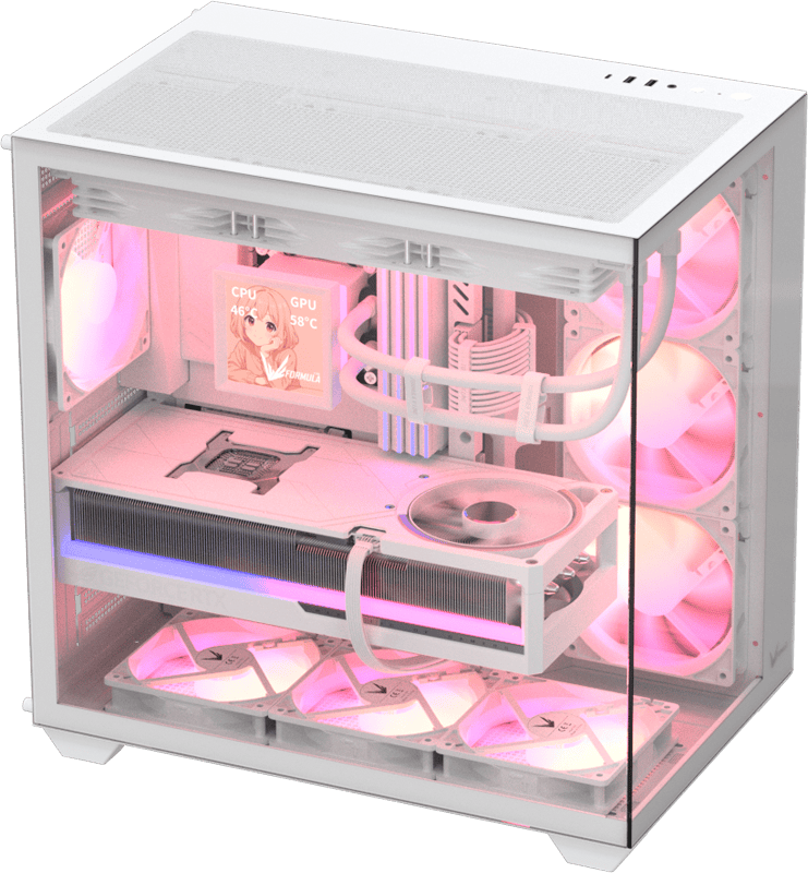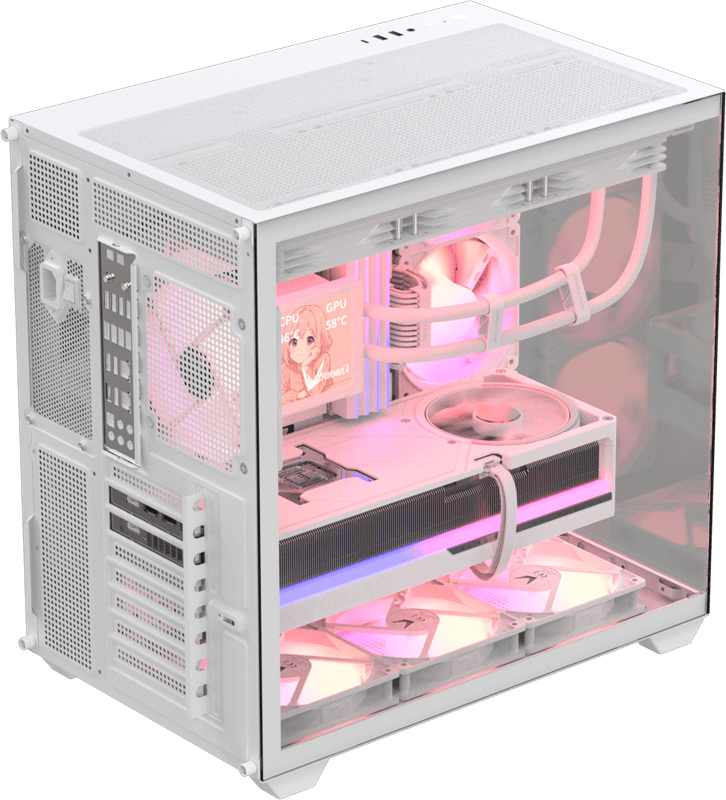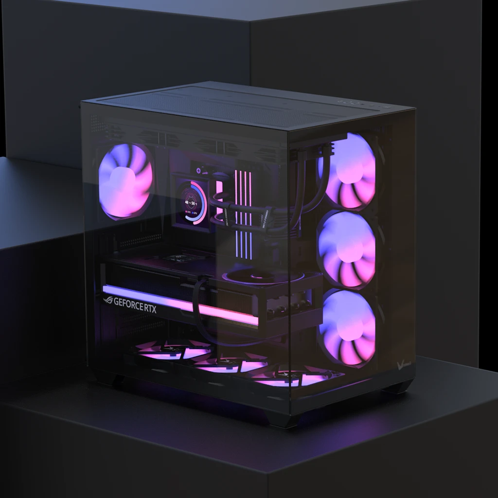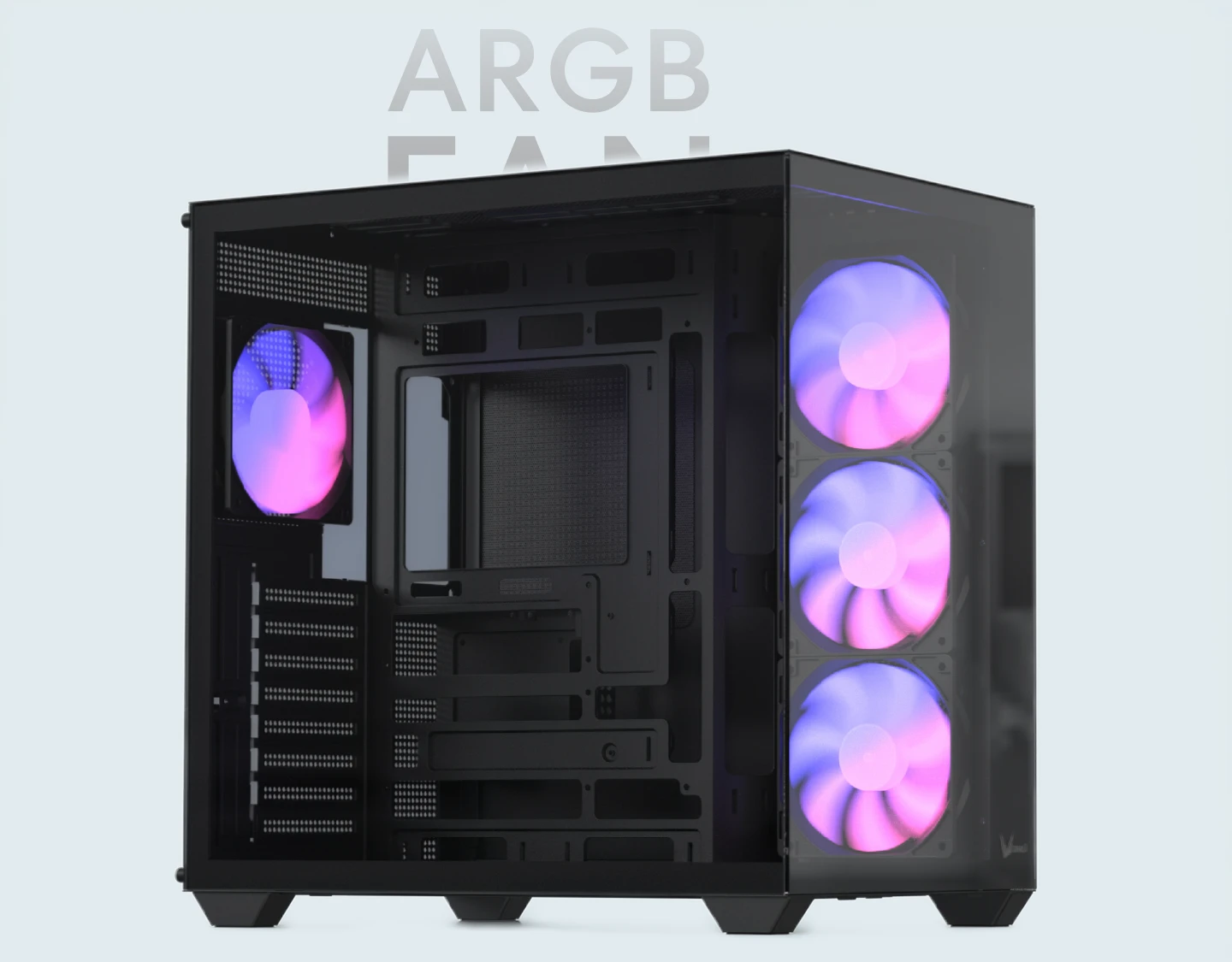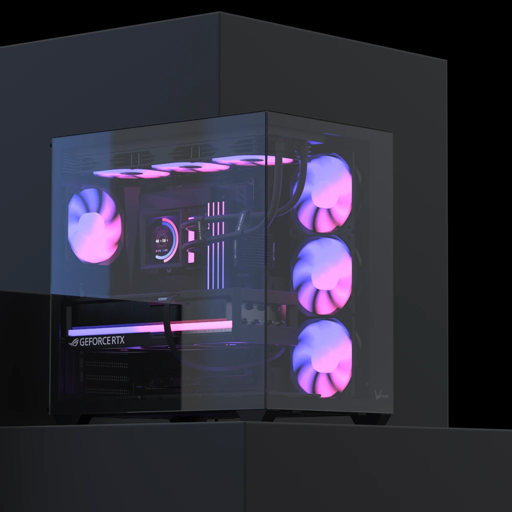 Версия Crystal Z2 V2 Plus оснащена четырьмя предустановленными ARGB вентиляторами, обеспечивая освещение и воздушный поток сразу после распаковки.