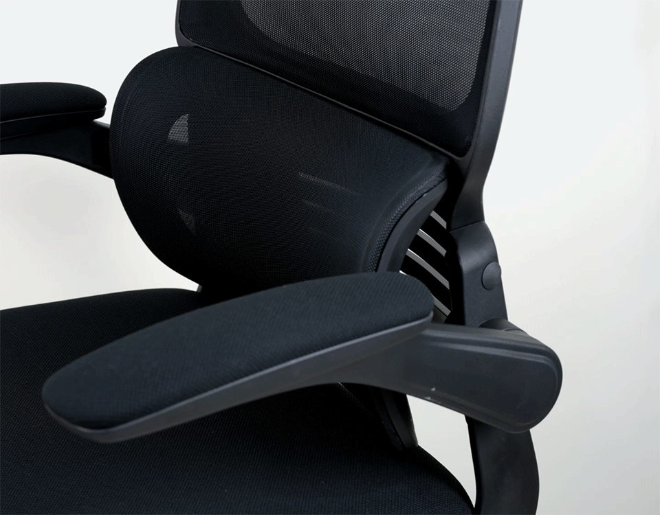 Мягкие подлокотники можно откинуть вверх, чтобы сэкономить место или обеспечить больше свободы движений. Отлично подходит для компактных пространств и гибких поз.
