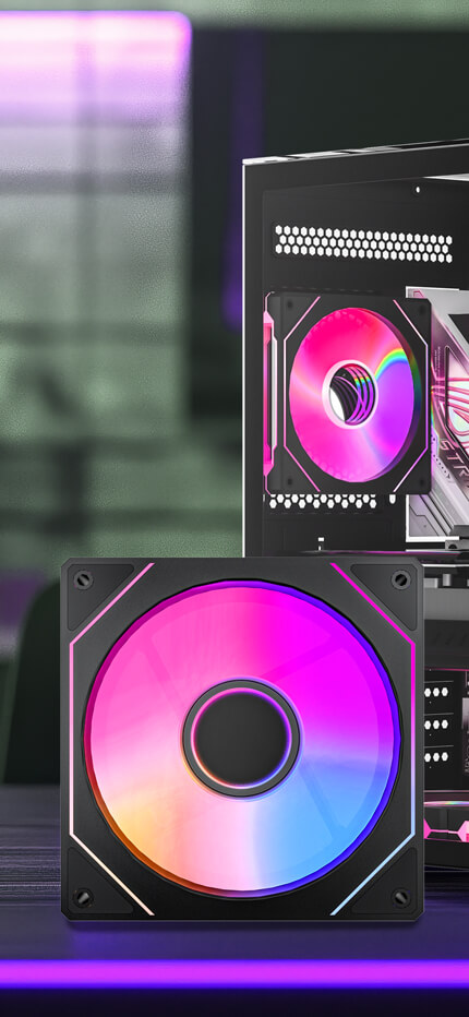 Вентилятор оснащён полупрозрачными лопастями, подчёркивающими яркость RGB-подсветки и создающими завораживающий эффект.